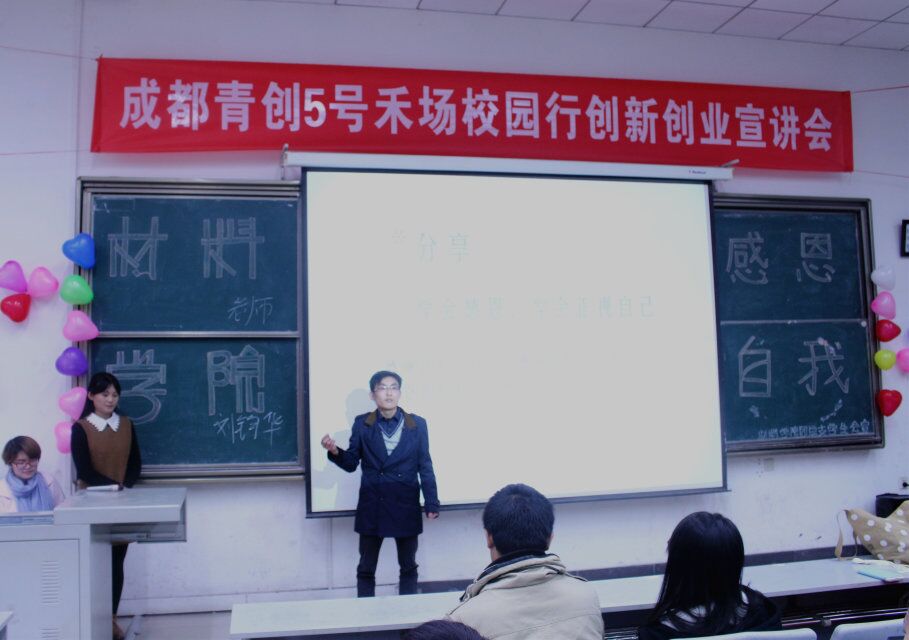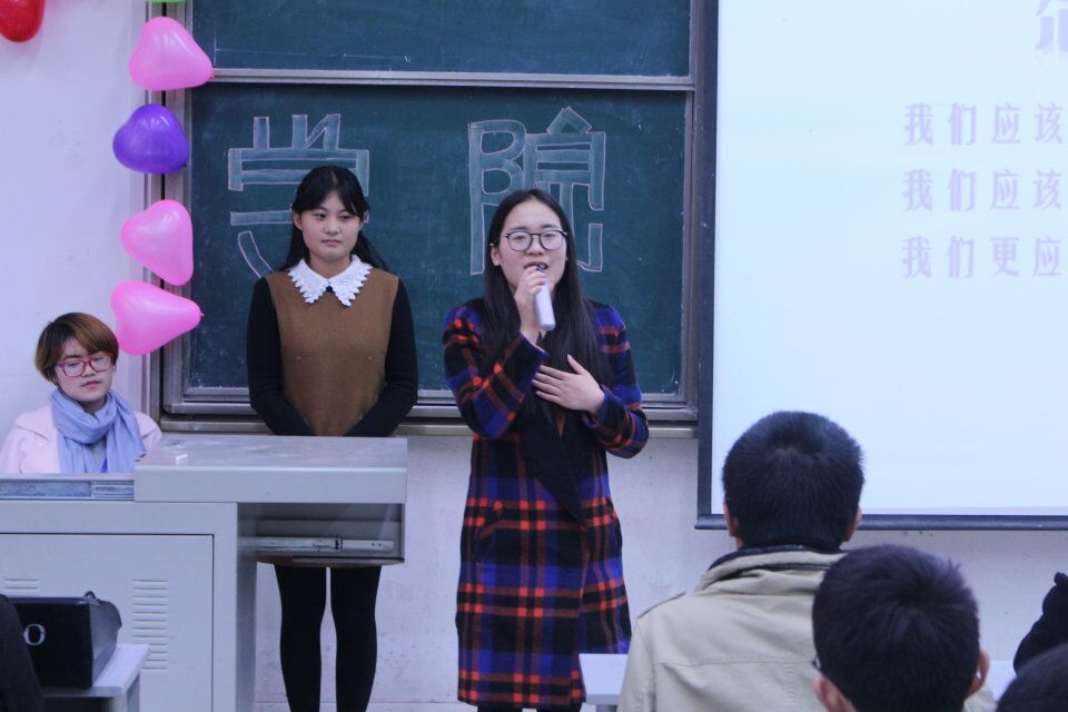 11月22日,我院“感恩自己,接纳自我”感恩节主题活动在教学楼c103举行。学院办公室主任雷春老师、团总支书记甄庆玲老师应邀参加。材料本131苏豪、刘钧华学长应邀来分享自己的成长经历。