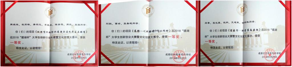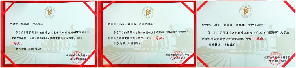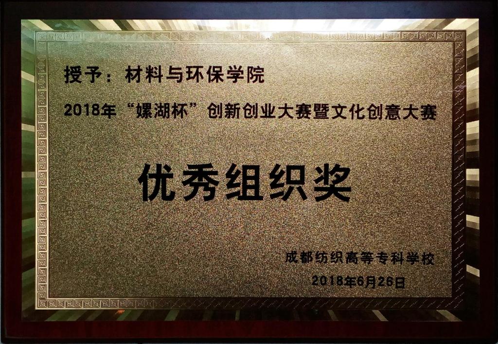 材料学院响应国家创新驱动大发展战略目标,深化学生创新创业教育,培养创新思维和创业能力,学院积极引导学生开展创新创业类活动。学院继2017年在第十四届“挑战杯”四川省大学生课外学术科技作品竞赛中省赛2个二等奖和4个三等奖的好成绩后,2018“创青春”大学生创新创业大赛中学院学生负责的《宜出行—野营装备出租》《自热保温环保饭盒》《清创环保科技》3个项目获得四川省赛铜奖。2018年学校“嫘湖杯”创新创业大赛,我院根据任务应报创业项目53项,在大家的共同努力下实报项目58项,超额完成任务。学院在58项中推出12项进行答辩,从中推选6项参加学校决赛,其中《环保型织物防水透湿涂层剂开发与销售》、《慕影—川剧脸谱DIY工作坊》、《宜出行—野营装备出租》获得一等奖,《自热环保饭盒》获得二等奖,《织菁服装工作室》、《智能防盗油传感器及其配套前端APP开发》获得三等奖。学院获得优秀组织奖。