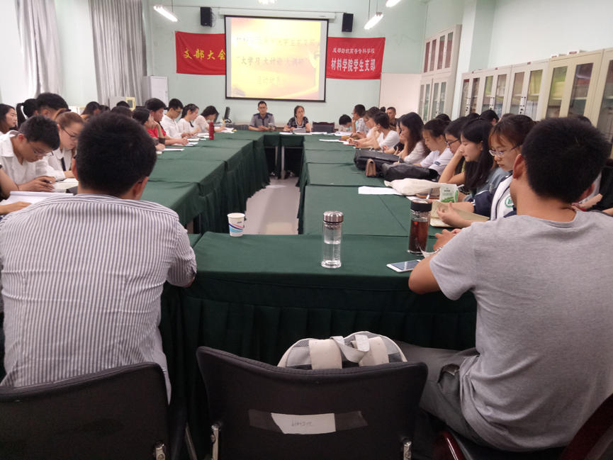 会上,刘真安书记组织全体人员学习了习近平总书记来川视察重要讲话精神以及省委书记彭清华在全省领导干部读书班上的讲话精神,并对材料学院“大学习、大讨论、大调研”活动进行了安排部署。刘书记希望同学们在今后的学习生活中以习近平新时代中国特色社会主义思想为导向,认真学习,勇于实践,敢于担当,扎实本领,为实现中国梦贡献力量。